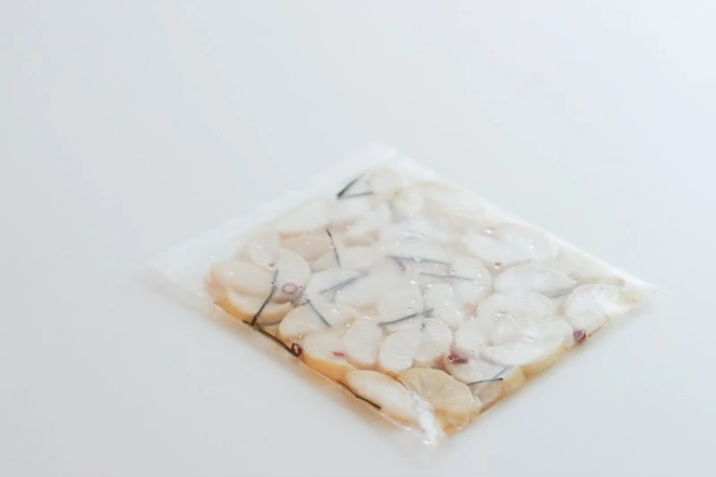 완성한 다음은 지퍼팩에 넣고 양념이 잘 베도록 납작하게. 무는 기호에 따라 말리는 정도를 조절하면 되는데 이 정도면 어느 정도의 꼬들거림일지 은근 기대된다. 그럼, 냉장고에서 잘 자고 내일 아침상에서 다시 만나는 걸로.
