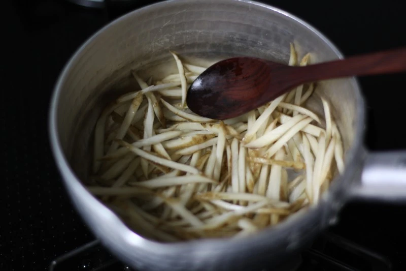 2. 우엉을 강불에서 볶으면서 물기를 완전히 빼주고,