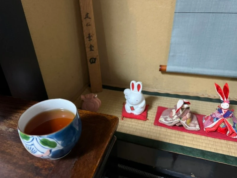 다다미 방에 앉아 중정을 즐길 수 있다.