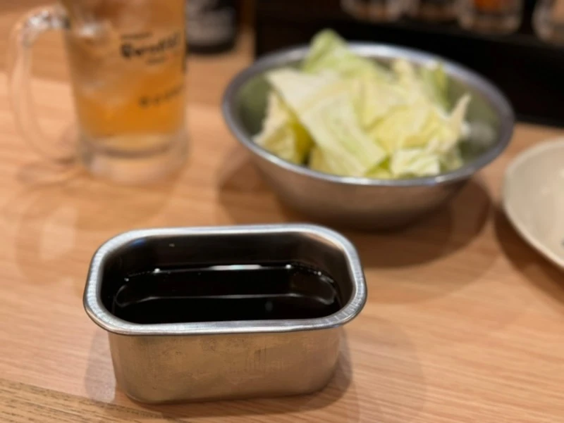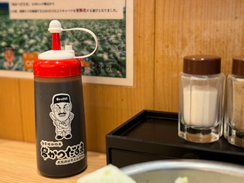 쿠시카츠 소스는 테이블마다 비치되어 있지만,