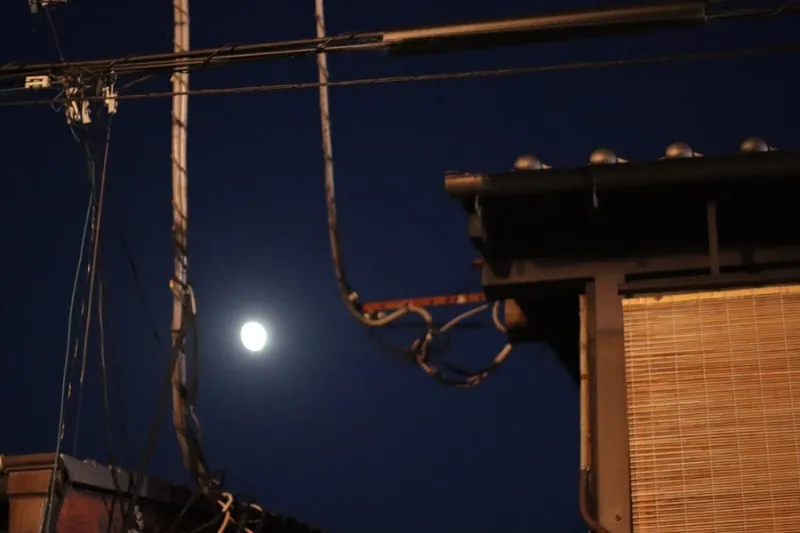 마치야 너머로 하얀 달이 모습을 들어냈다.