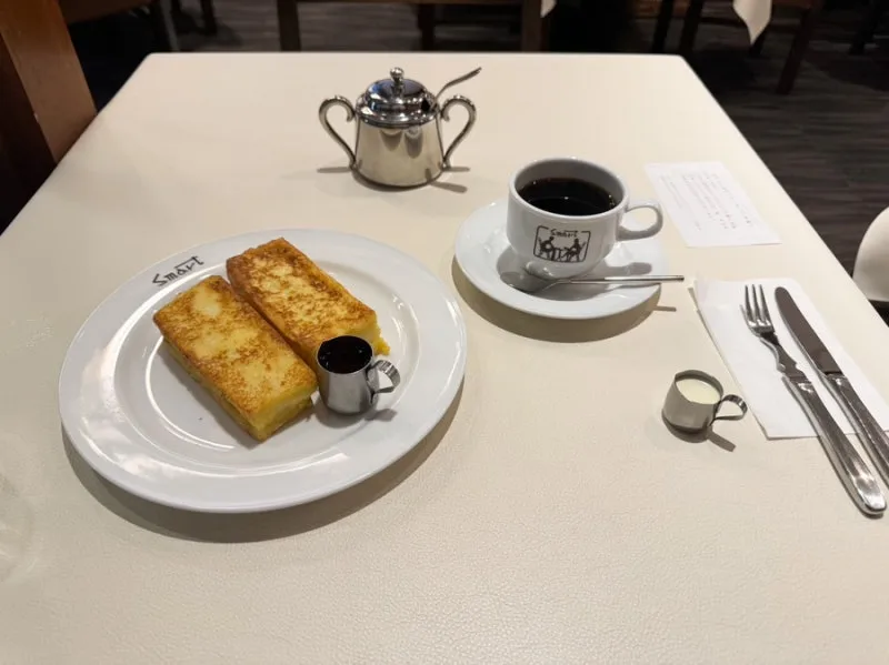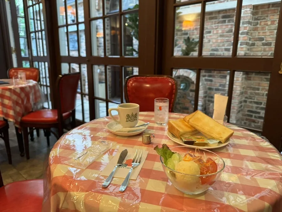 모닝 세트로 토스트와 간단한 샐러드를 주문했고