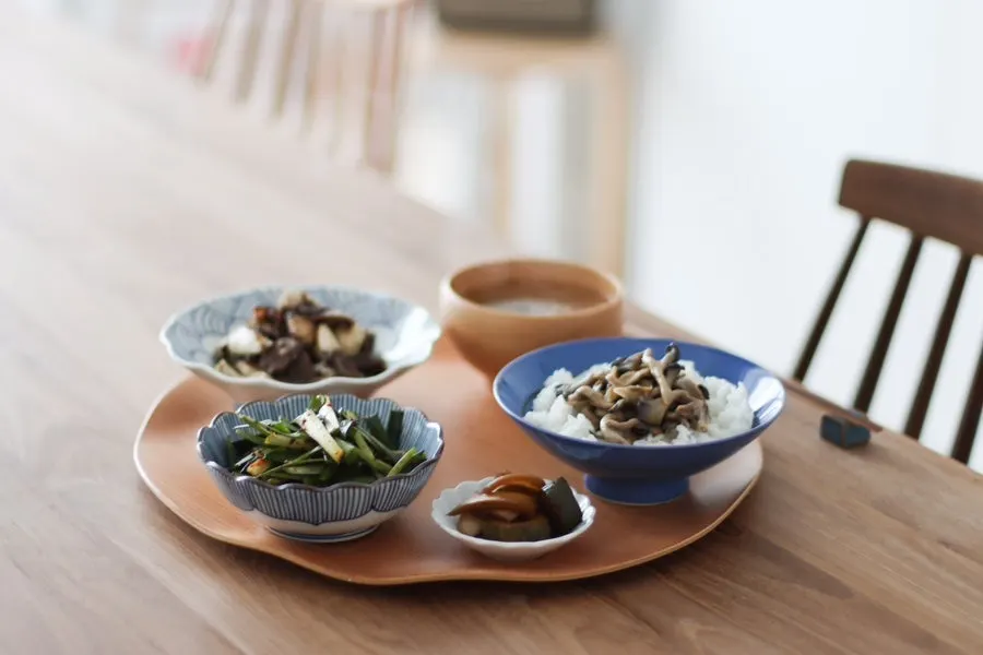 참타리버섯 간장 볶음을 곱게 올린 밥