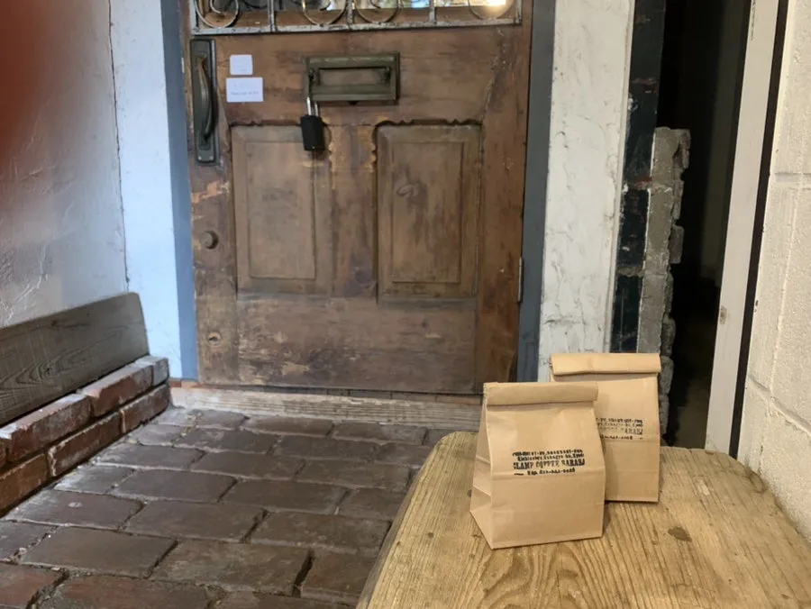 손 느낌 가득한 카페 문을 열자