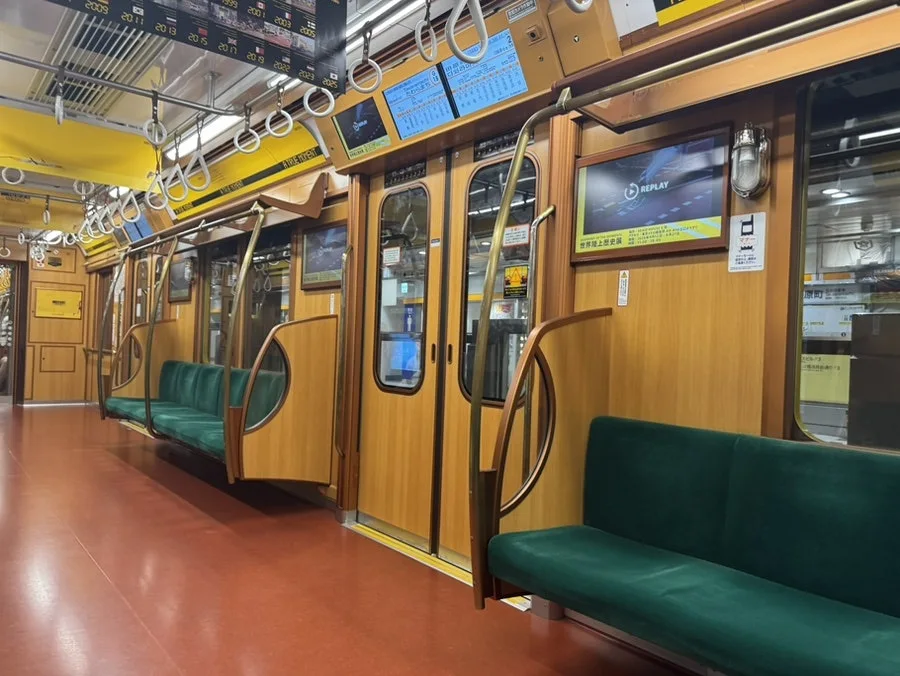 좋아하는 긴자센, 가끔 운이 좋으면 레트로풍의 전철을 만나죠. 전체 긴자센의 5%라니 타는 것만으로도 행운인데, 아사쿠사역까지 가다 보니 이렇게 텅 빈 전철까지 담을 수 있었지 뭐예요.