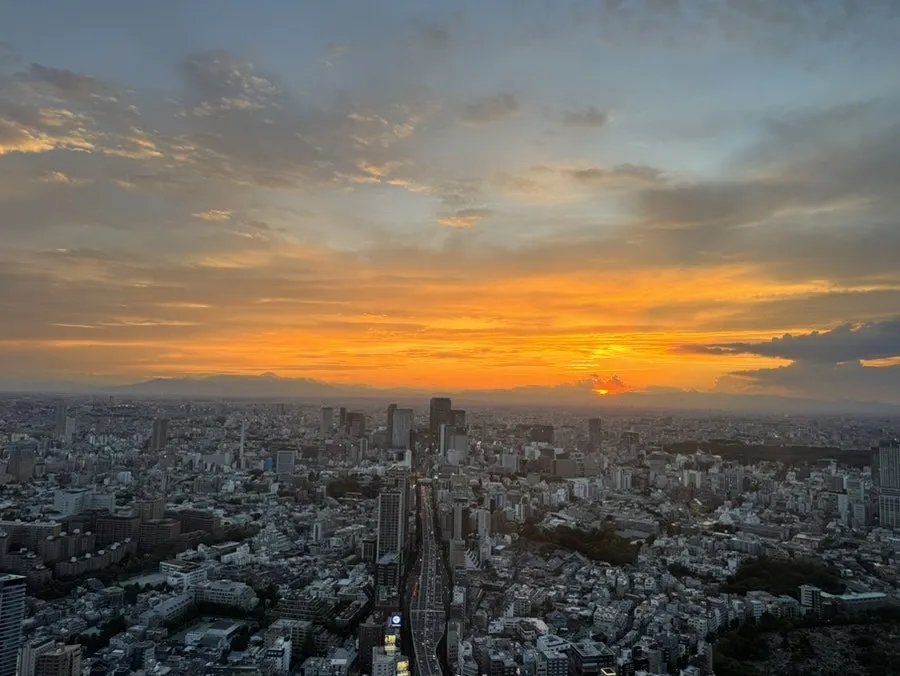 쇼핑으로 온몸이 피로한 탓도 있었지만 아무 생각 없이 해가 내려앉는 풍경을 바라보는 자체가 좋아 꽤 오랜 시간을 시선을 멀리 두고 도시를 즐겼습니다. 힐즈에서의 뷰는 도쿄타워가 강렬해 늘 그 기억만 남았는데 이번엔 후지산 쪽 풍경도 놓치지 않았습니다.