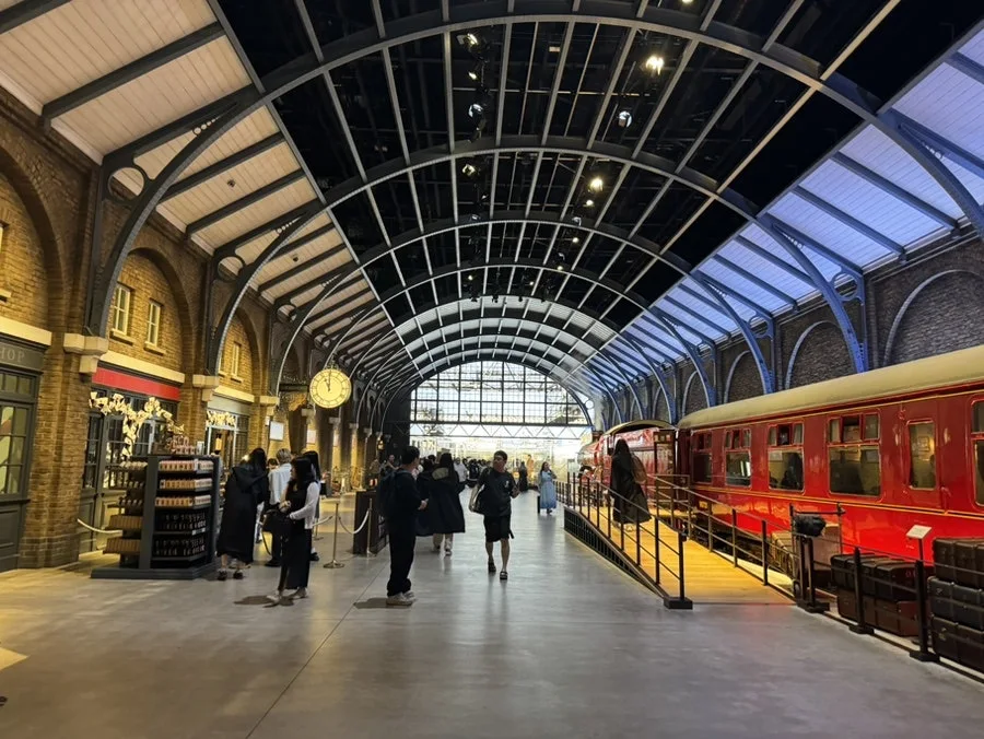아, 그중 제일 더운 날 하루는 해리 포터 스튜디오에서 보냈어요. 전철에서 내리면서부터 펼쳐지는 해리 포터 세계가 기분을 양껏 끌어올려 주었지요. 이때를 놓치지 않고 짜잔 망토 세트를 깜짝 선물로 꺼내니 조카가 얼마나 좋아하던지, 한국에서부터 챙겨 온 보람이 있었습니다.