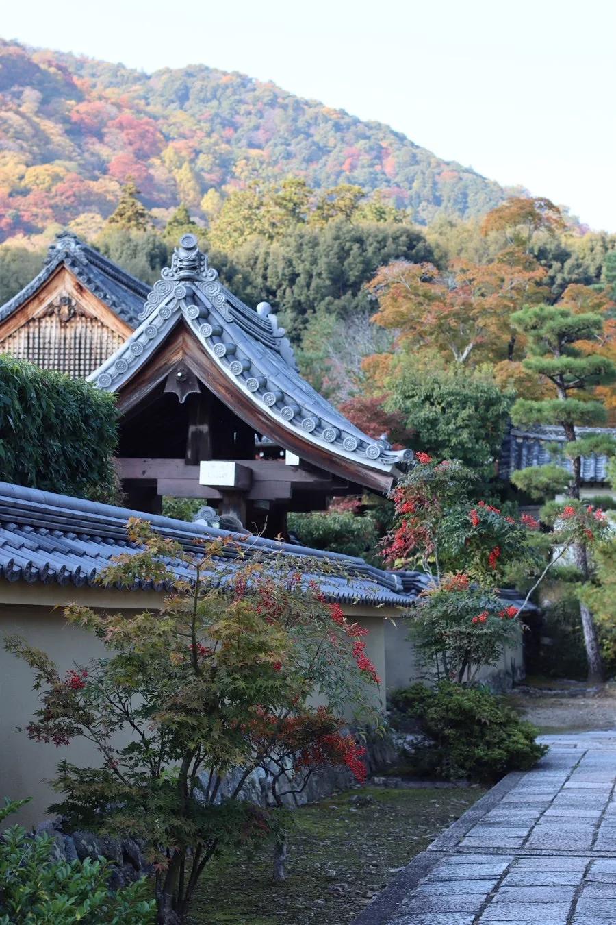 조금 늦은 아침, 빨래를 건조기에 돌리는 사이 잠시 산책을 나왔다. 현관문을 열고 나오면 곧바로 여행이 되어버리는 곳. 하루가 다르게 선명해져가는 산 너머로 시선을 던지며 발걸음은 텐류지를 향했다.
