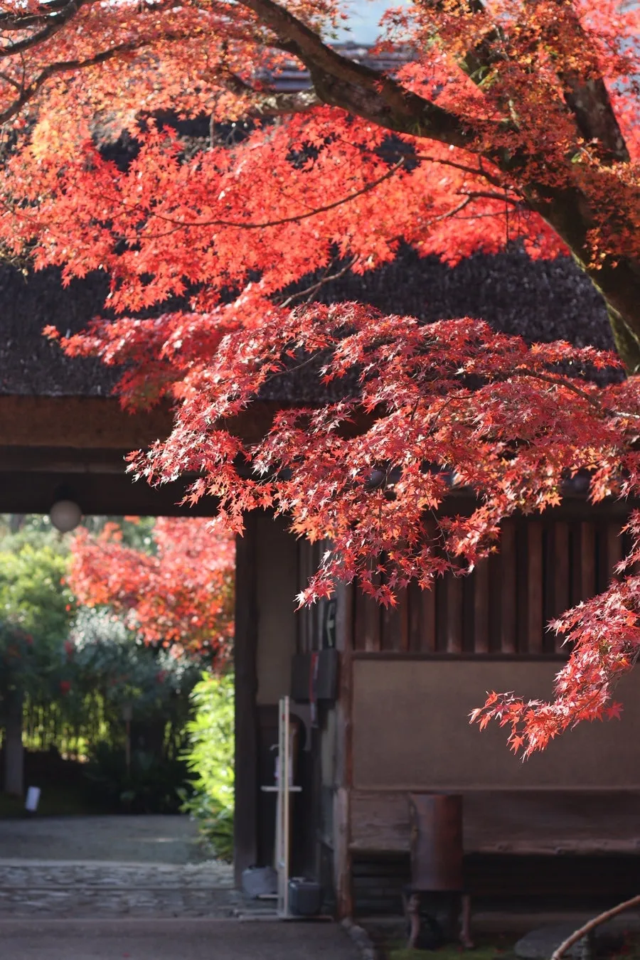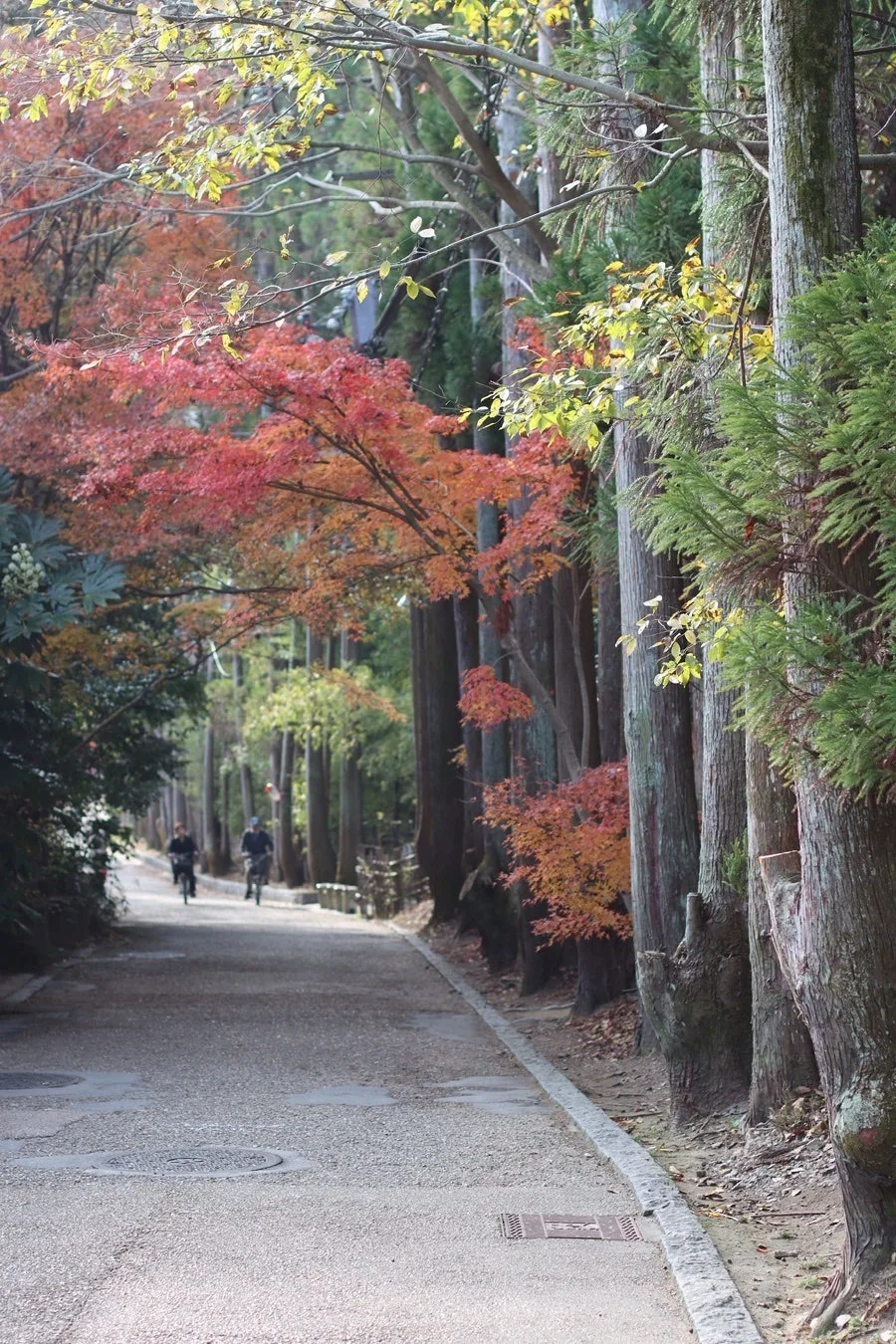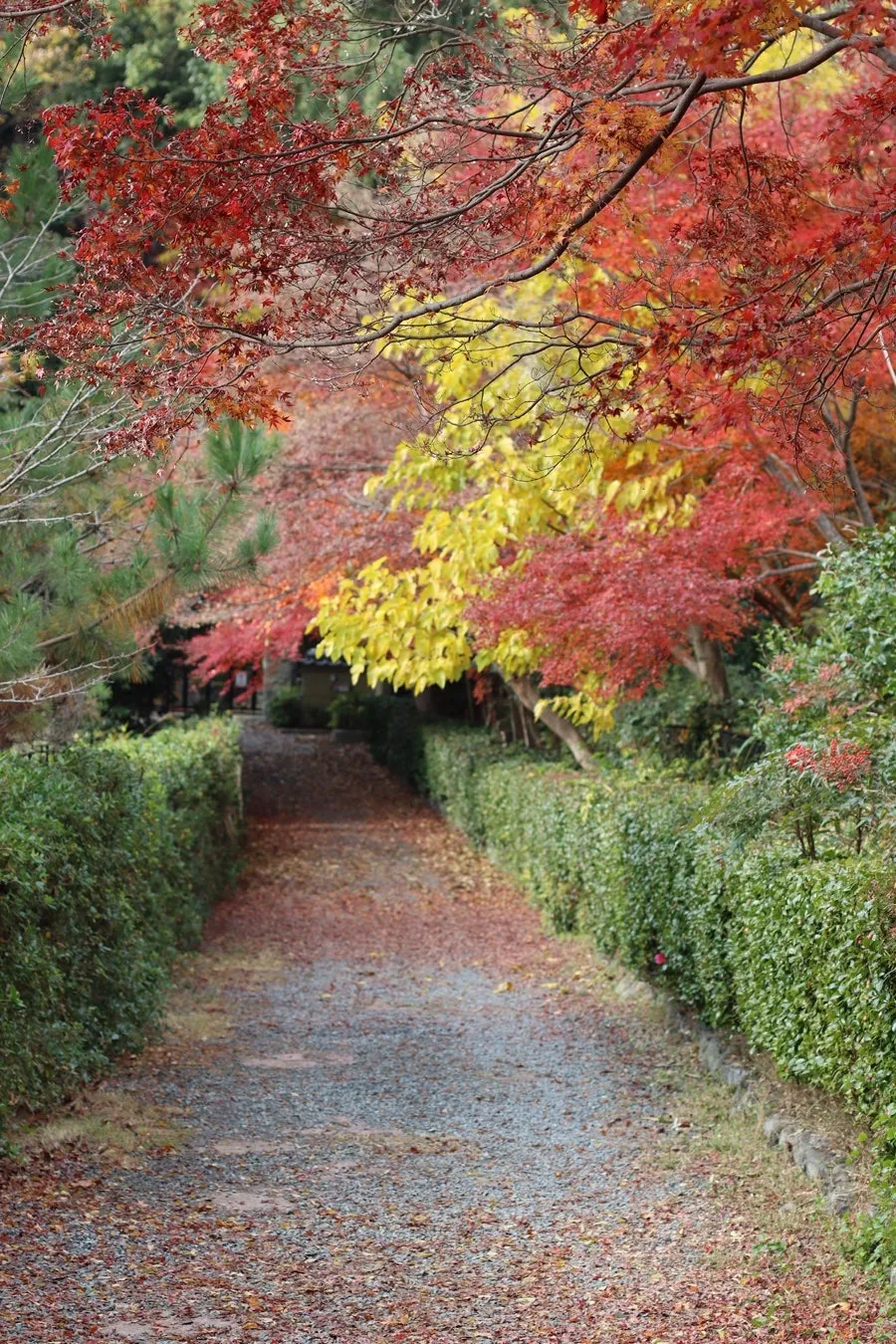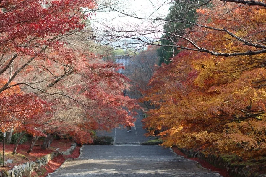 니손인은 들어서면 눈앞에 펼쳐지는 양쪽에서 뒤덮은 새빨간 단풍나무길로 유명하지만 어느새 한쪽이 잎이 지기 시작했다.