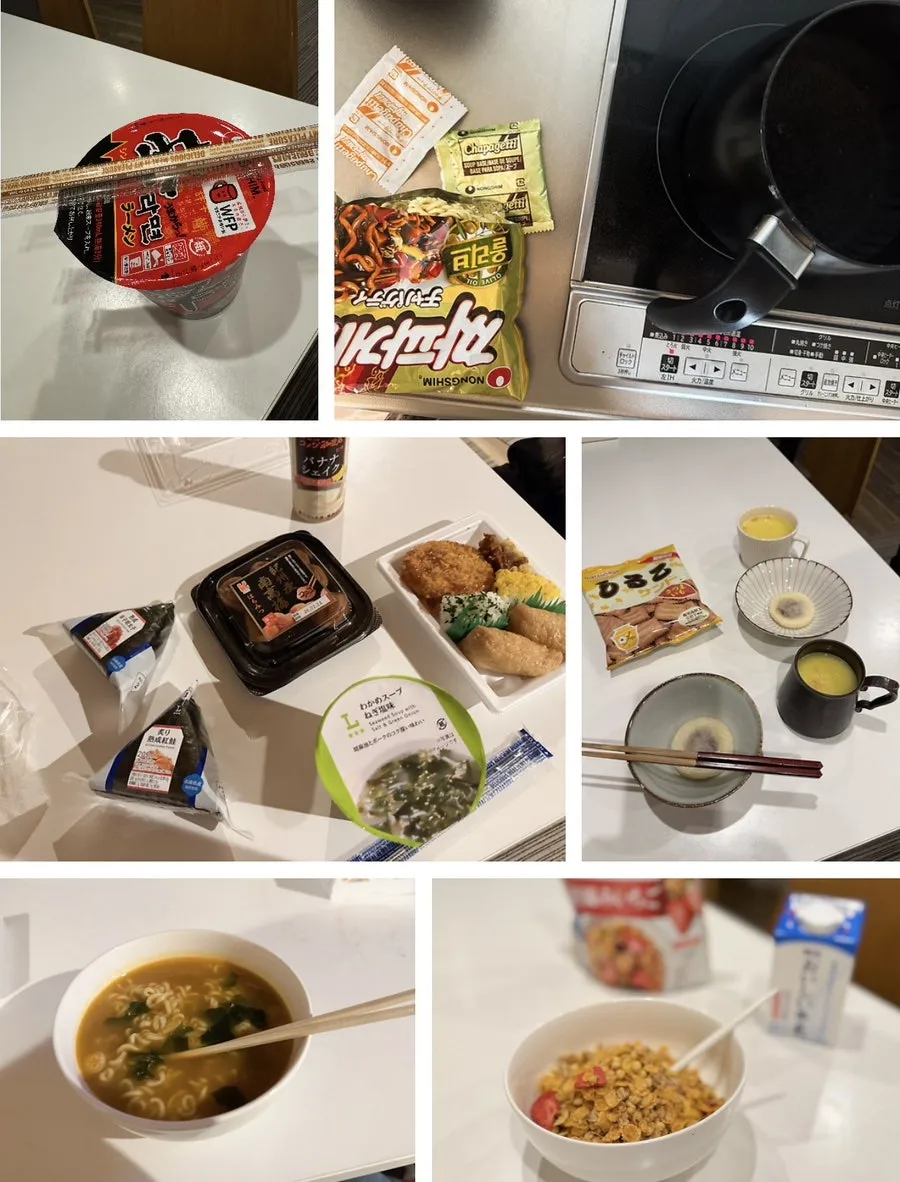 2명이 퇴실하기 전에는 가끔 각자의 저녁을 들고 와 함께 식사를 하기도 했는데 콤비니 음식들을 모아놓고 서로를 안타까워하며 한참을 웃기도 했다. 적당히 친근하고 적당히 거리감 있는 생활이 나쁘지 않다.