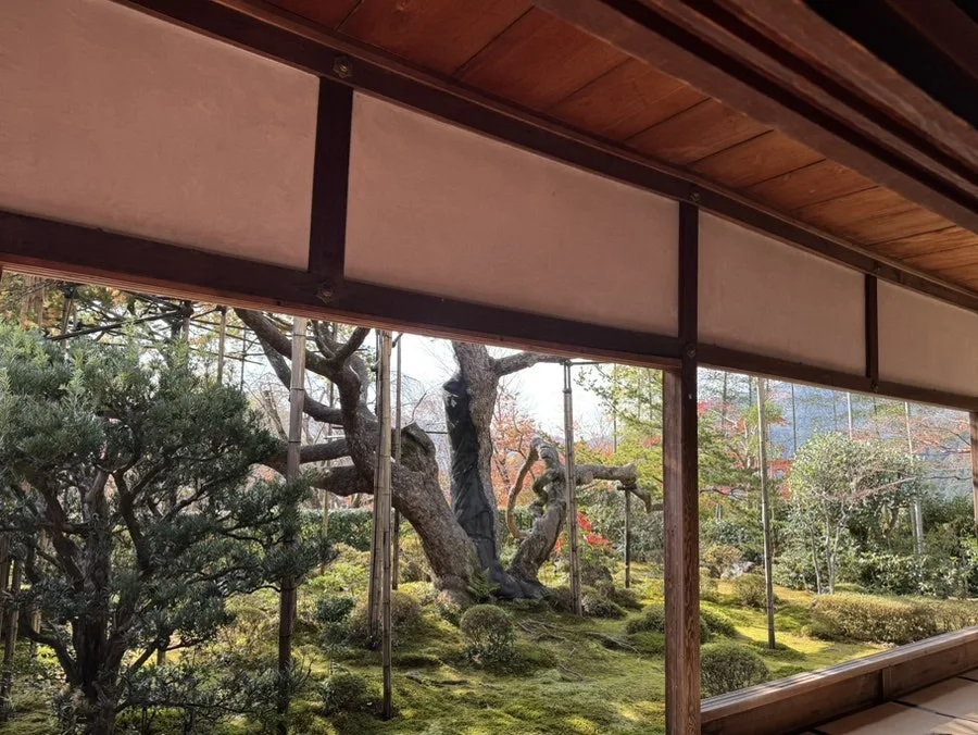 호센인 입장료에는 맛차가 포함되어 있어 안으로 들어가 티켓을 주고 자리를 잡고 앉으면 맛차와 오카시를 내어다 준다. 그렇게 정원을 바라보며 맛차를 즐기는 차분한 시간이 호센인 본연의 맛이지만, 가을의 한가운데서 800년 깊이의 절을 음미하기엔 사람들이 한꺼번에 너무 많이 밀려들었다. 아마도 그 시간대가 단체 관광객이 몰리는 시간이었던 것 같다. 나는 맛차를 보리차 마시듯 들이키고는 재빨리 그곳을 빠져나왔다.