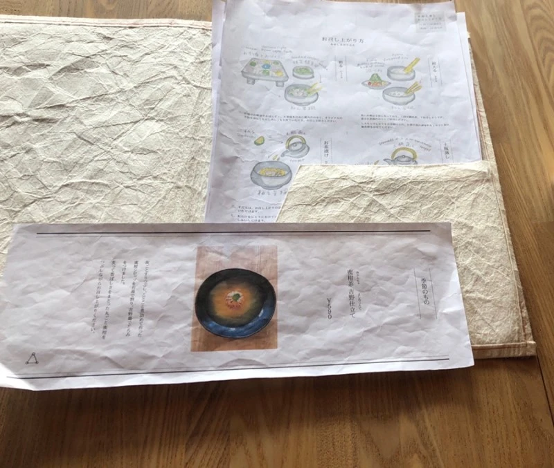 앙증맞은 그림으로 먹는 방법까지 세세히 설명되어있는 정성스러운 메뉴, 그 사랑스러운 메뉴는 이곳을 방문하는 이들의 소소한 즐거움으로 남겨두기 위해 펼치지 않겠습니다. 소바초코[そば猪口]에 담긴 오차도 마메자라[豆皿]에 담긴 물티슈도 테이블 숫자가 써진 투박한 돌멩이에도 이곳의 감성이 고스란히 전해졌습니다.