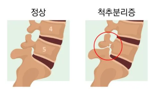 척추뼈 뒤쪽으로 관절 사이가 좁아져 있는 부분인 협부에 결손이 발생한 상태