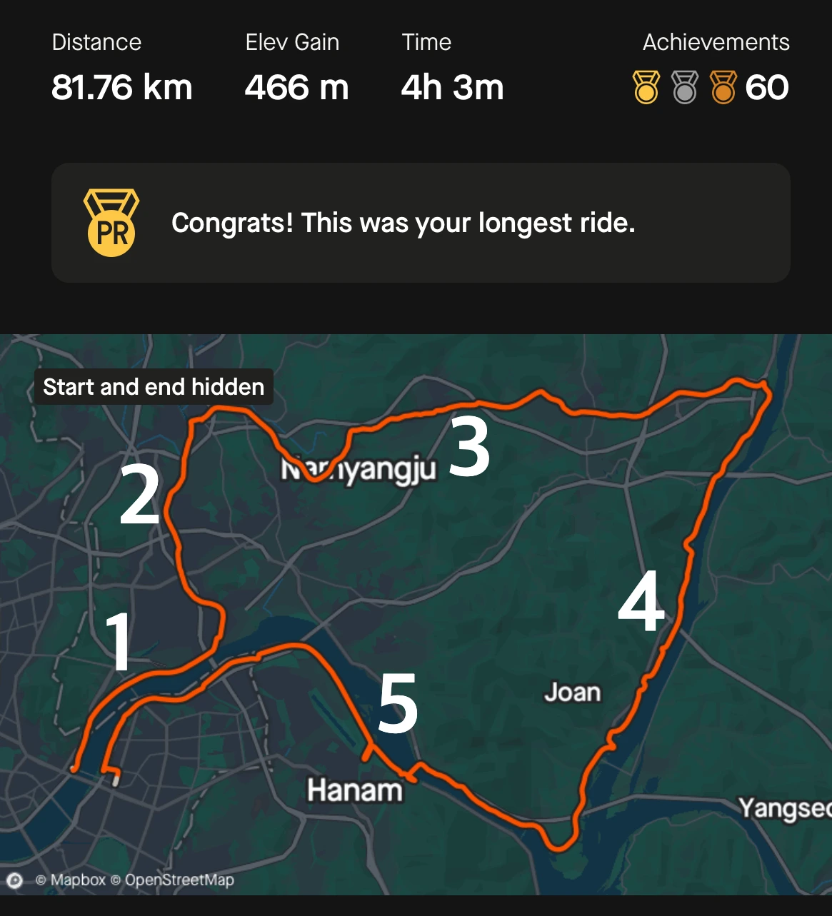 그래도 80Km 정도 되고, 아직은 날도 뜨거우니 물도 많이 먹고, 사이사이 잘 챙겨먹읍시다.