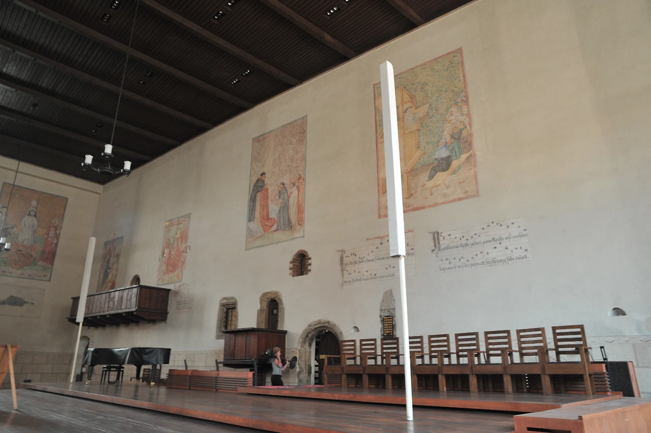 베들레헴 교회의 내부. 후스의 종교 개혁과 후스 사후 종교 전쟁의 양상을 그린 그림들이 있었다.