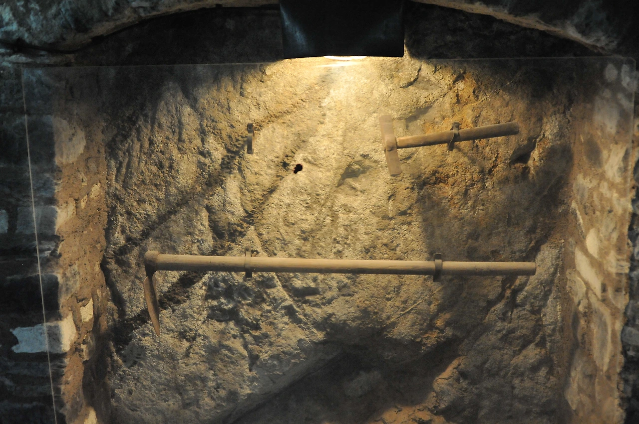 이 후스 박물관엔 지하 터널로 들어가는 입구가 있는데, 험난한 시절들을 보내며 점점 확장된 끝에 타보르 시내 전체 터널 길이는 무려 12~14km에 이른다고 한다. 사진을 찍지 못하게 해서 겨우 곡괭이 하나 찍었다.