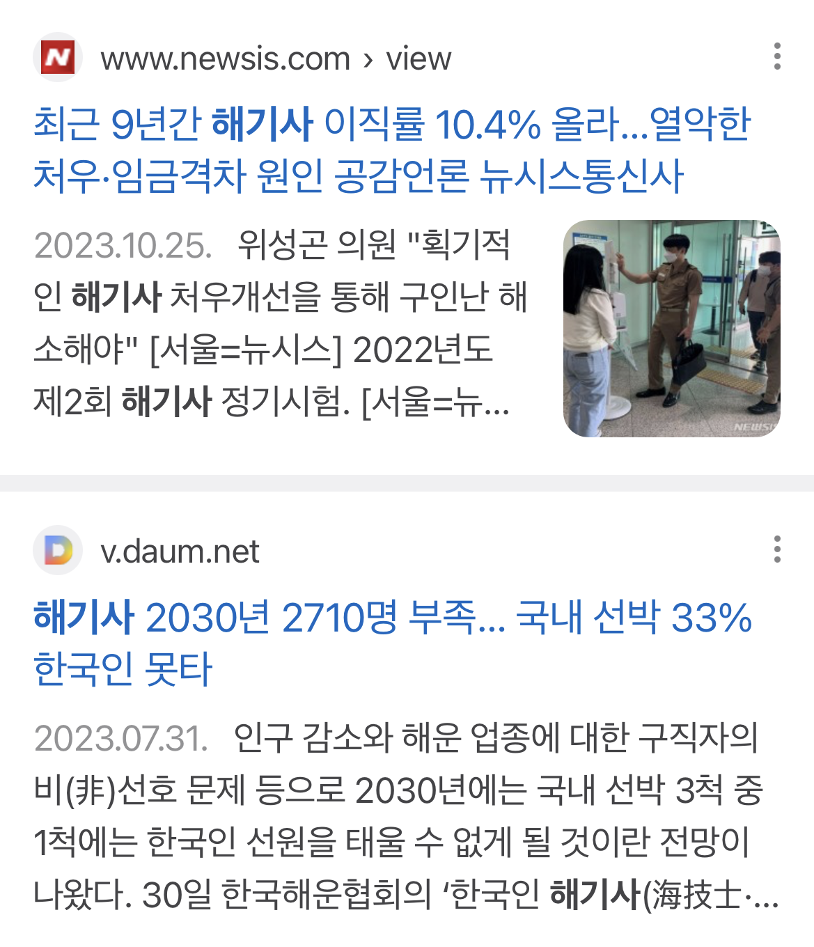 해기사(항해사&기관사)는 결혼을 하게 되면 무조건 기러기 아빠가 된다.
