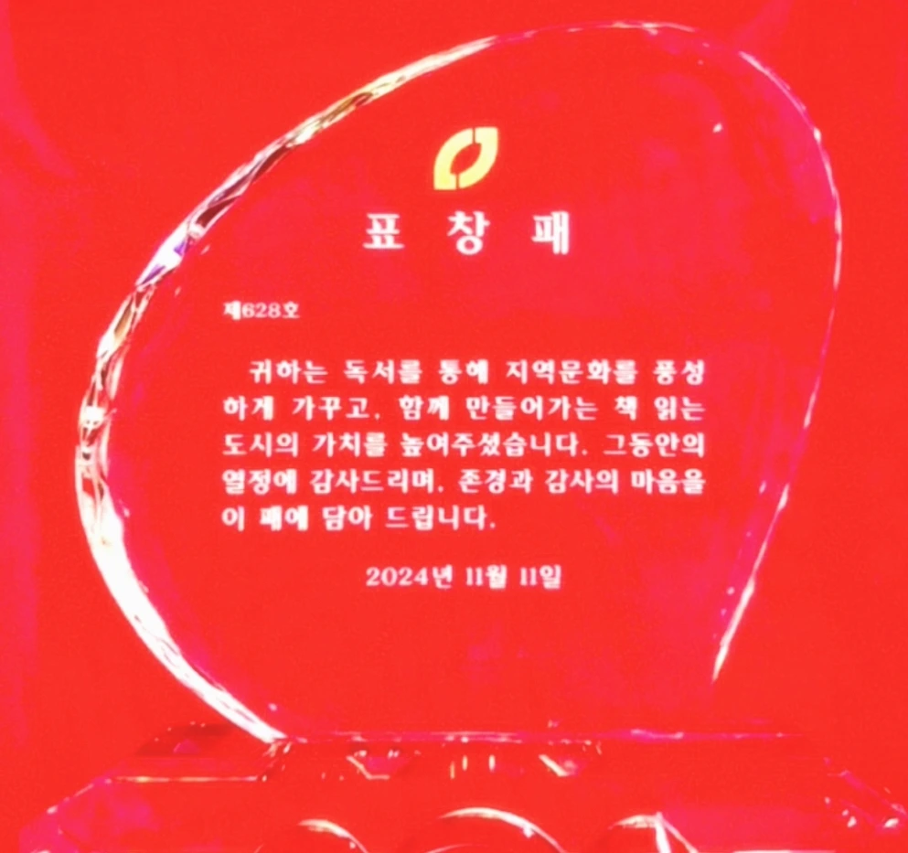 도서관 서포터즈 표창패는