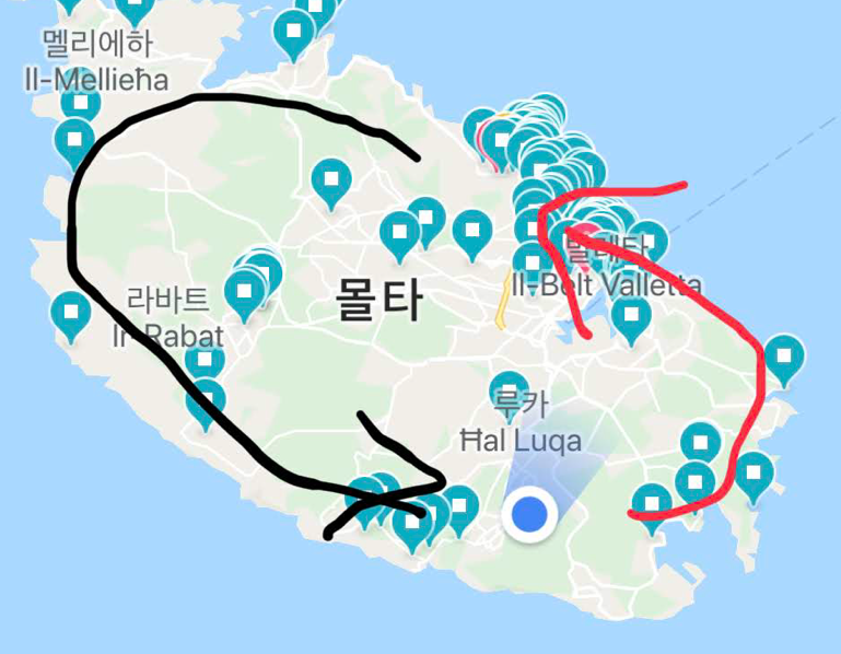 몰타의 크기가 궁금하실 것이다. 몰타섬은 주변의 섬을 제외하면 제주도의 1/7 정도의 크기이다. 강화도가 몰타섬보다 조금 더 큰 수준이라고 하면 짐작이 되시리라 생각한다. 그러니 3박 4일 동안 한 바퀴를 도는 것이 무리한 계획은 아니었다. 그리고 이 계획에 거창한 목적이나 원하는 바도 없었다. 그저 현재 내가 보고 느끼는 것을 온전히 수용할 수 있는 시간이길 바랐다.