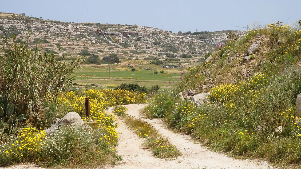 '저런 황무지 길에 볼 게 뭐가 있나.' 싶으실 수도 있지만, 나는 꽃무더기만 보아도 걷기를 멈추고 한눈을 팔기 일쑤였다. 우리나라와 달리 산지가 없는 몰타섬은 그저 앞만 보고 걸어도 마음이 탁 트이는 느낌이었다. 지도를 보며 지도길을 따라 걷지도 않았다. 이 길로 가다 보면 뭐든 나오겠지 하는 생각이었다.(그리고 다른 갈림길이 딱히 있지도 않았다.) 그렇게 산길인지 들길인지 모를 흙길을 한참 걷다 보면 저 멀리 마을이 보이곤 했다.