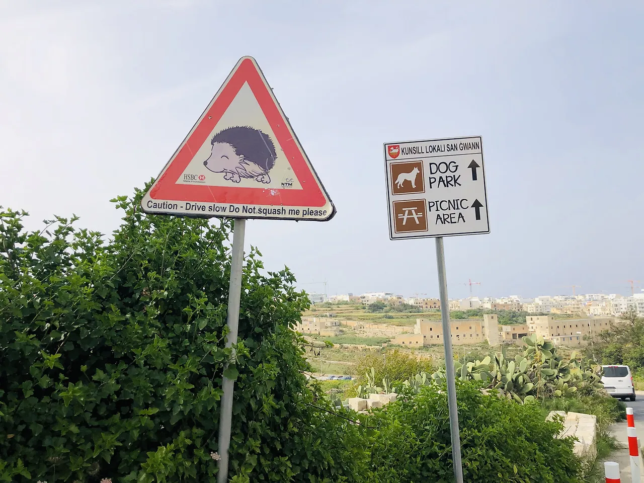 '몰타 한 바퀴'를 하며 볼 수 있는 자연의 풍경도 좋았지만, 이런 소소한 마주침들도 좋았다. 한국에서는 생소한 고슴도치를 밟지 말아 달라는 표지판, 유머러스한 커피 광고판, 낮은 담장 안에서 쉬고 있는 말, 대문간에 대충 시멘트를 바른 장식에서 느끼는 따스함 등.