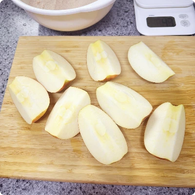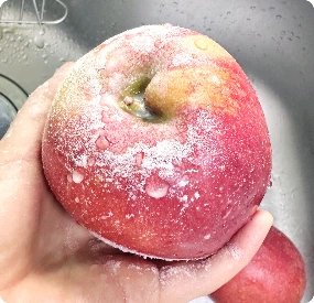 평소 사과를 깎아 먹을 땐 물로 대충 씻어서 먹지만, 청으로 만들 땐 곰팡이가 생길 수 있으니 균 번식을 최소한으로 할 수 있도록 닦아야 한다. 베이킹소다를 뿌려 거칠게 박박 닦고 물로 씻어낸다.
