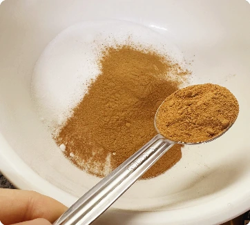 2개이므로 설탕 400g과 계피가루 6g을 섞는다. 사실 그람으로 얘기하면 감이 잘 안 오는데, 설탕은 사과 크기의 2/3 정도의 양을 쓰면 적당하다. 계피가루 3g은 밥숟가락으로 크게 한 숟가락이다.