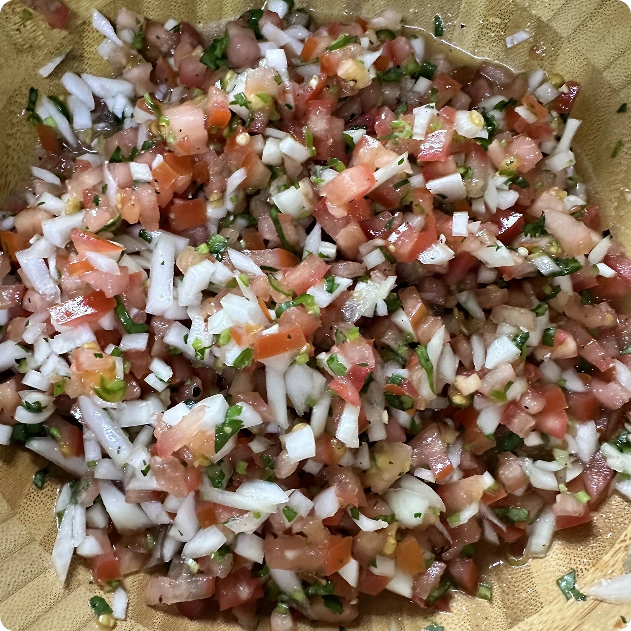 그럼에도 아주 잘게 다진 이유는, 그래야 맛있었기 때문이다! 샐러드 삼아 토마토 살사만 퍼 먹자면 과육이 제법 커도 좋았으나, 나초나 바게트빵 등과 곁들이는 데에는 잘게 다진 편이 훨씬 맛있었다.