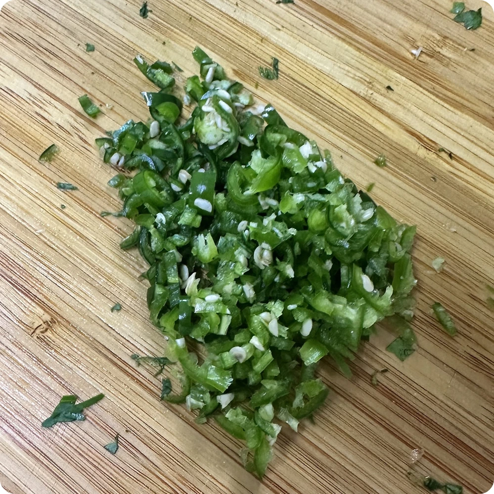 청양고추의 매운맛이 은근하게 와닿는 게 좋으므로 최대한 잘게 다진다.