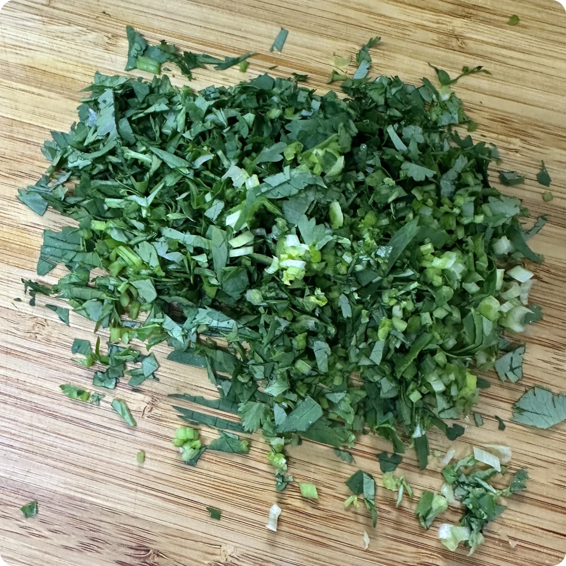 향신료 포인트인 고수는 식감이 아니라 향을 위해 넣는 것이므로 최대한 잘게 다졌다.