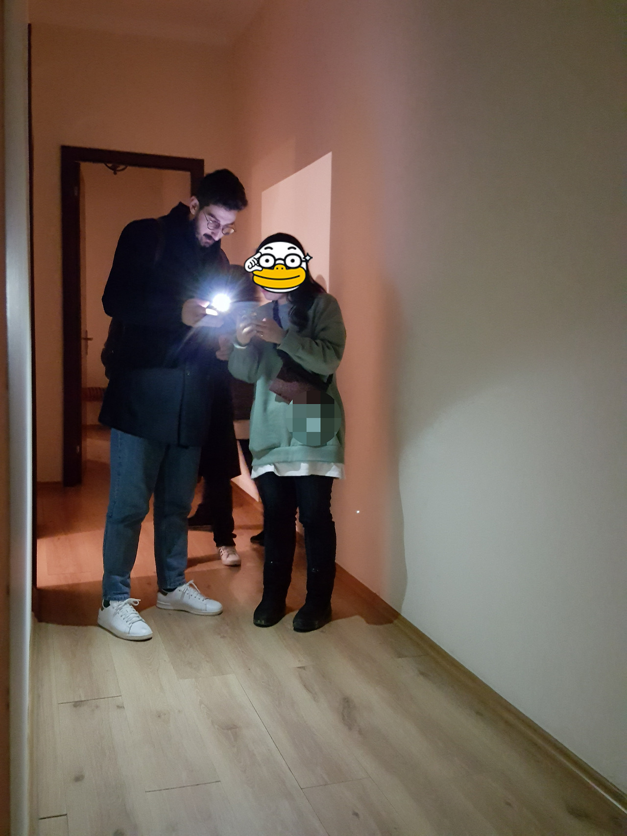 앞서 주사기에 당황한 터라 이곳이 맞는지 확인하기 위해 어린(?) 30대 둘을 남겨두고 언니 두 분이 아파트와 숙소를 먼저 살펴보러 나섰다. 그리고 꾀 시간이 지나서야 두 분은 무척 상기된 표정으로 돌아왔다. 그동안 엘리베이터에 갇혀있었단다.