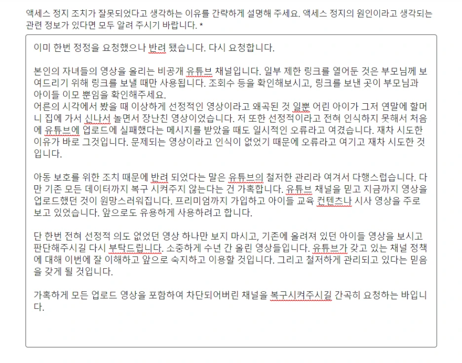 분명 차단됨 이라는 메시지를 봤지만 업로드 오류인가 보다 생각하며 대수롭지 않게 여겼다.