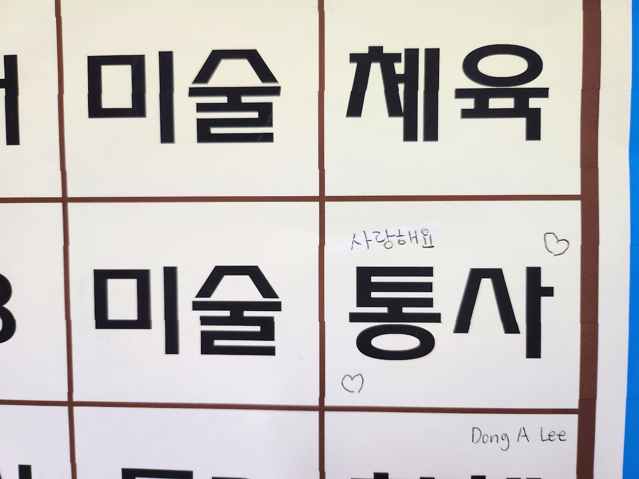 시간표를 구성하는 10개 과목 중 단 두 과목에 하트가 있었답니다. (그걸 굳이 확인했다지요 ㅋ)