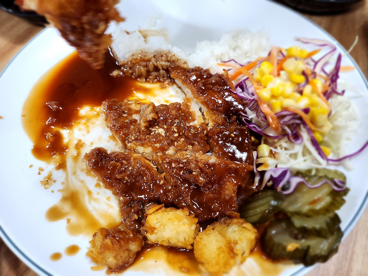 돈가스는 사진을 찍기도 전에 아들의 습격을 받았어요
