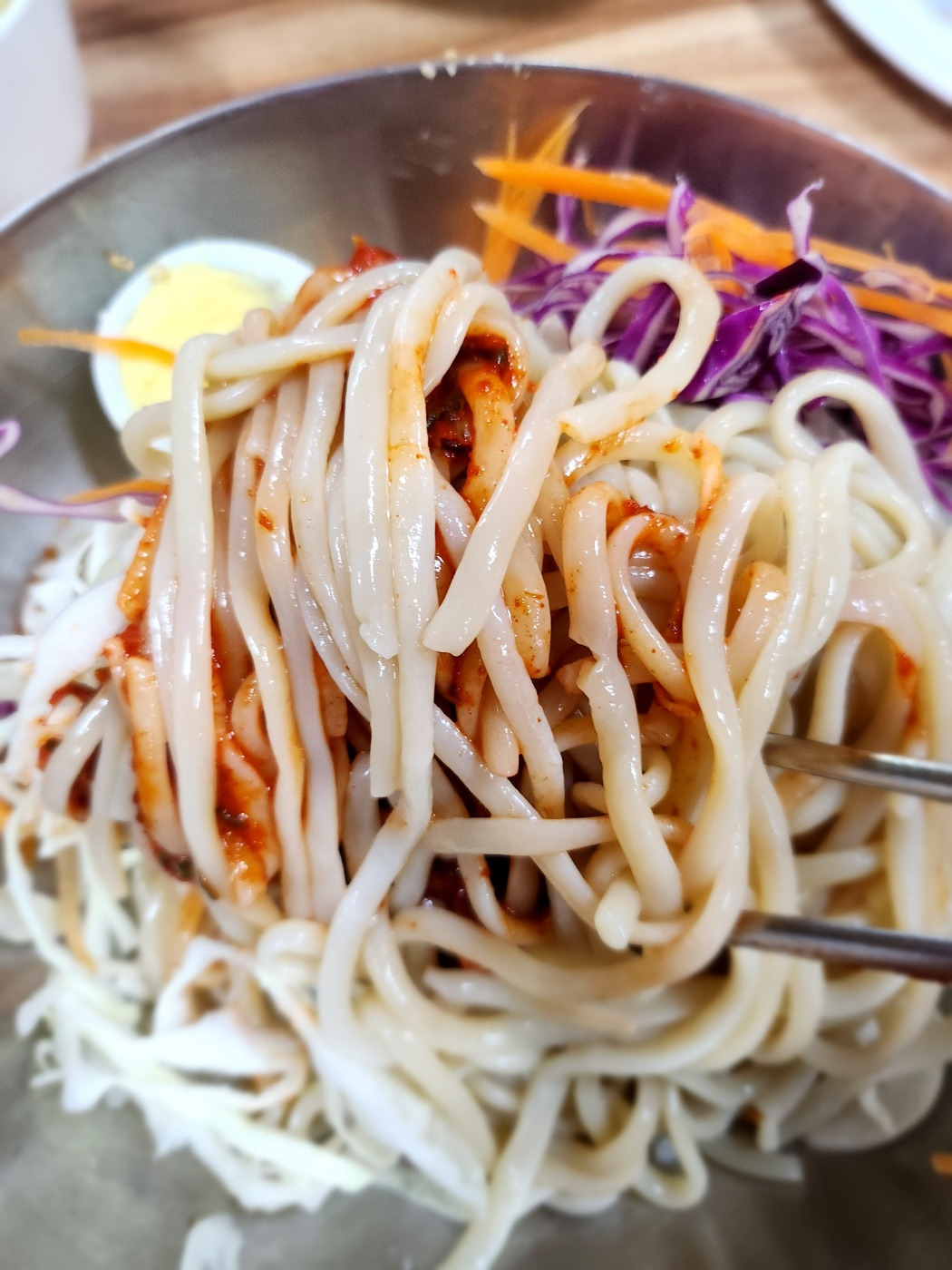 면이 보통의 쫄면과 달라요, 훨씬 부드럽고 적당히 쫄깃합니다