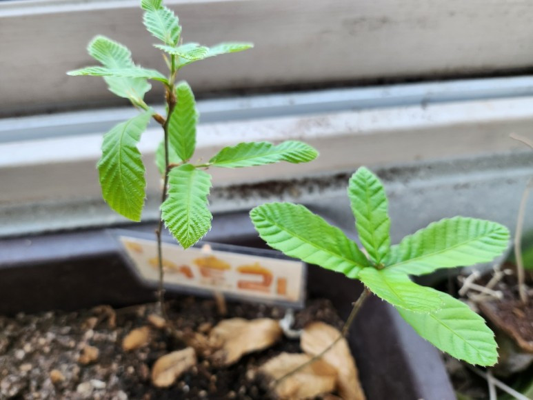 원래 처음 도토리를 받았을 적에는 봄에 심어서 가을에 이 녀석들을 숲에 옮겨 심기주기로 했었어요.