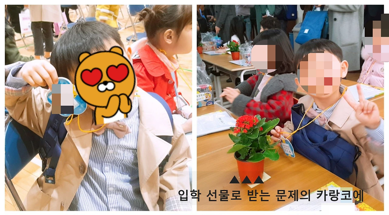 남매가 다니는 학교는 대대로 입학하는 날 선물로 칼랑코에 화분을 줍니다.