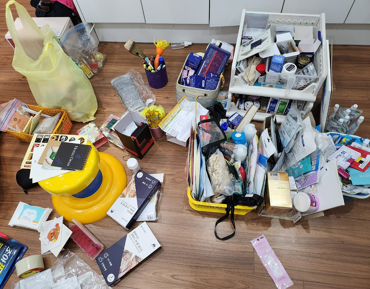 버릴 물건을 추리고 같은 물건끼리 모아두더군요.