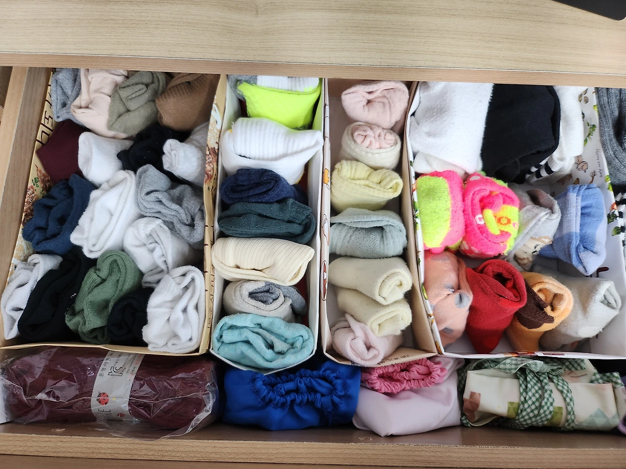 사실 그동안 양말 서랍장은 칸막이가 없어서 남매의 양말이 뒤섞여 아이들이 제 것을 찾기가 어려웠습니다.