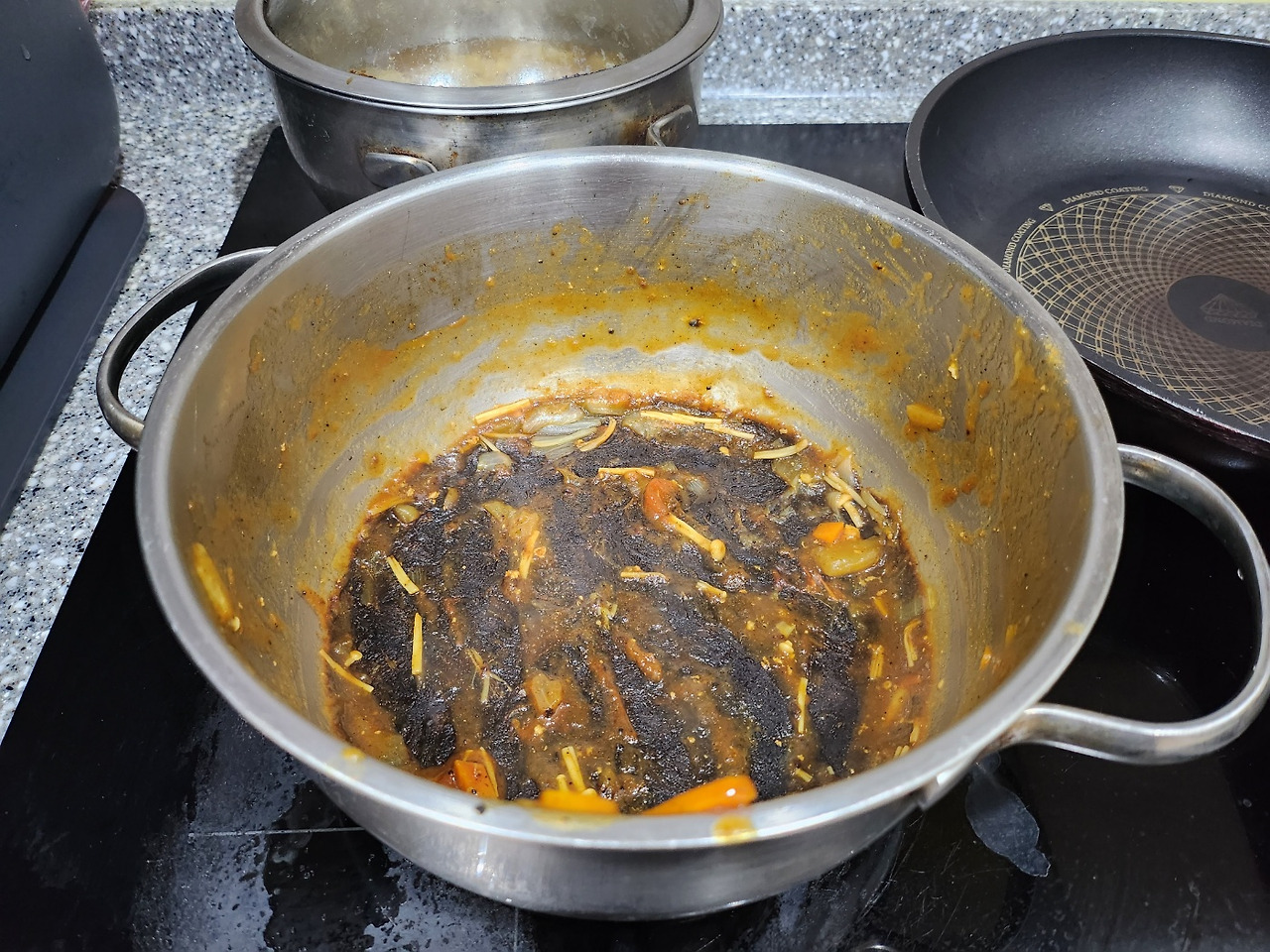 ㅋㅋㅋ 미안 참 쉽지 않은데 말이야. 내가 카레를 좀 태웠어.