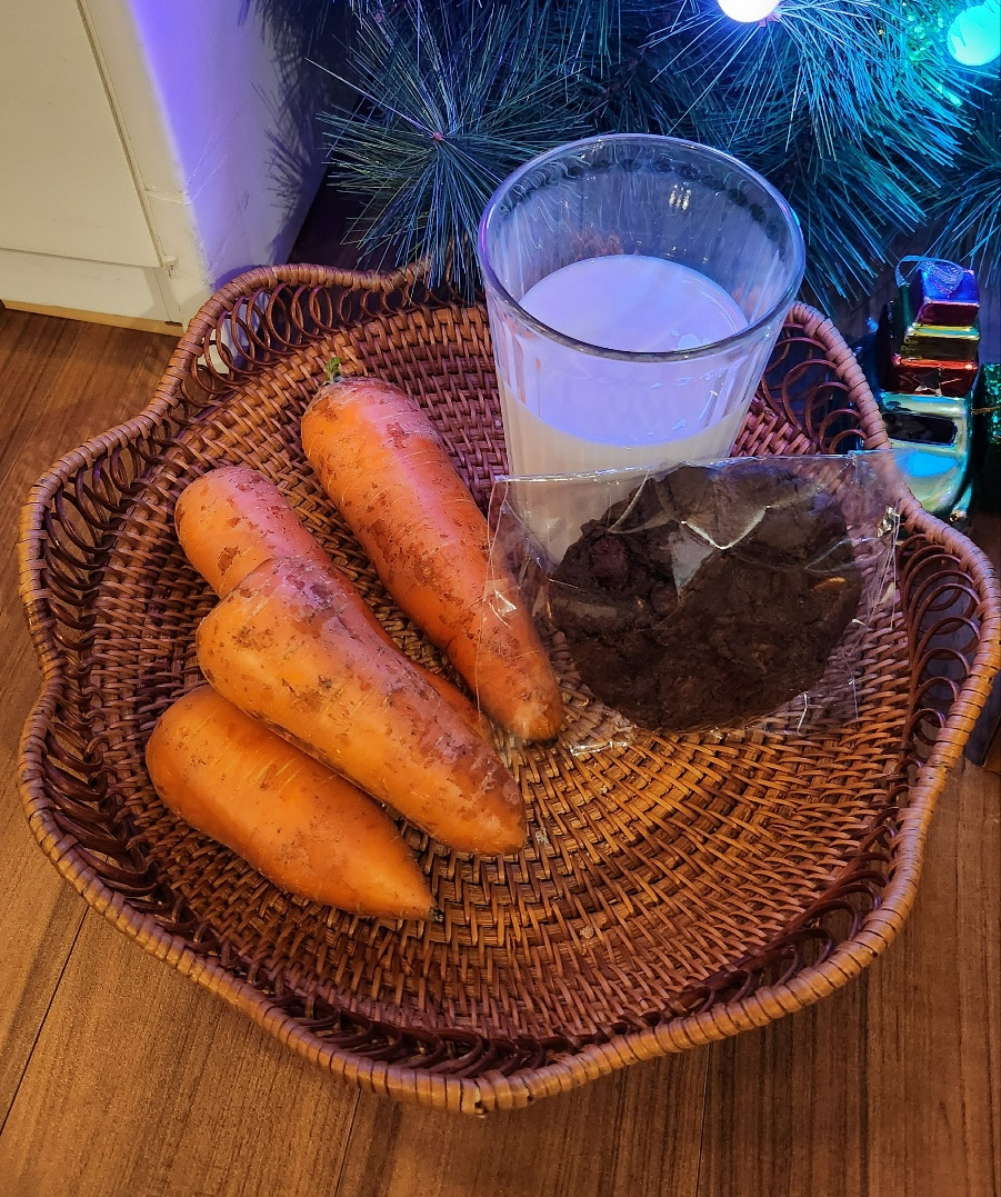 엄마! 당근이랑 쿠키, 그리고 우유가 필요해 당근 있어? 쿠키는 아직 남았지?