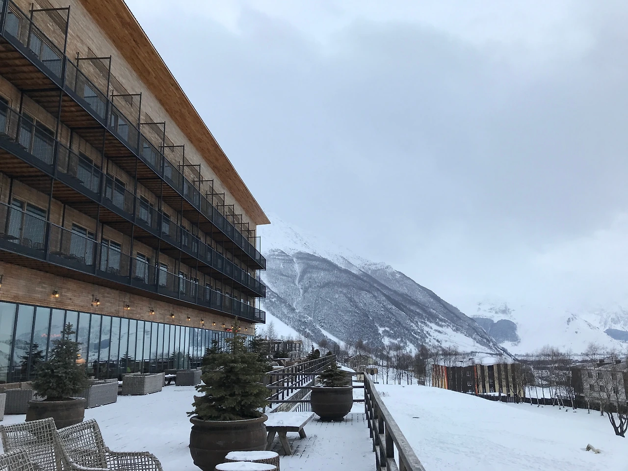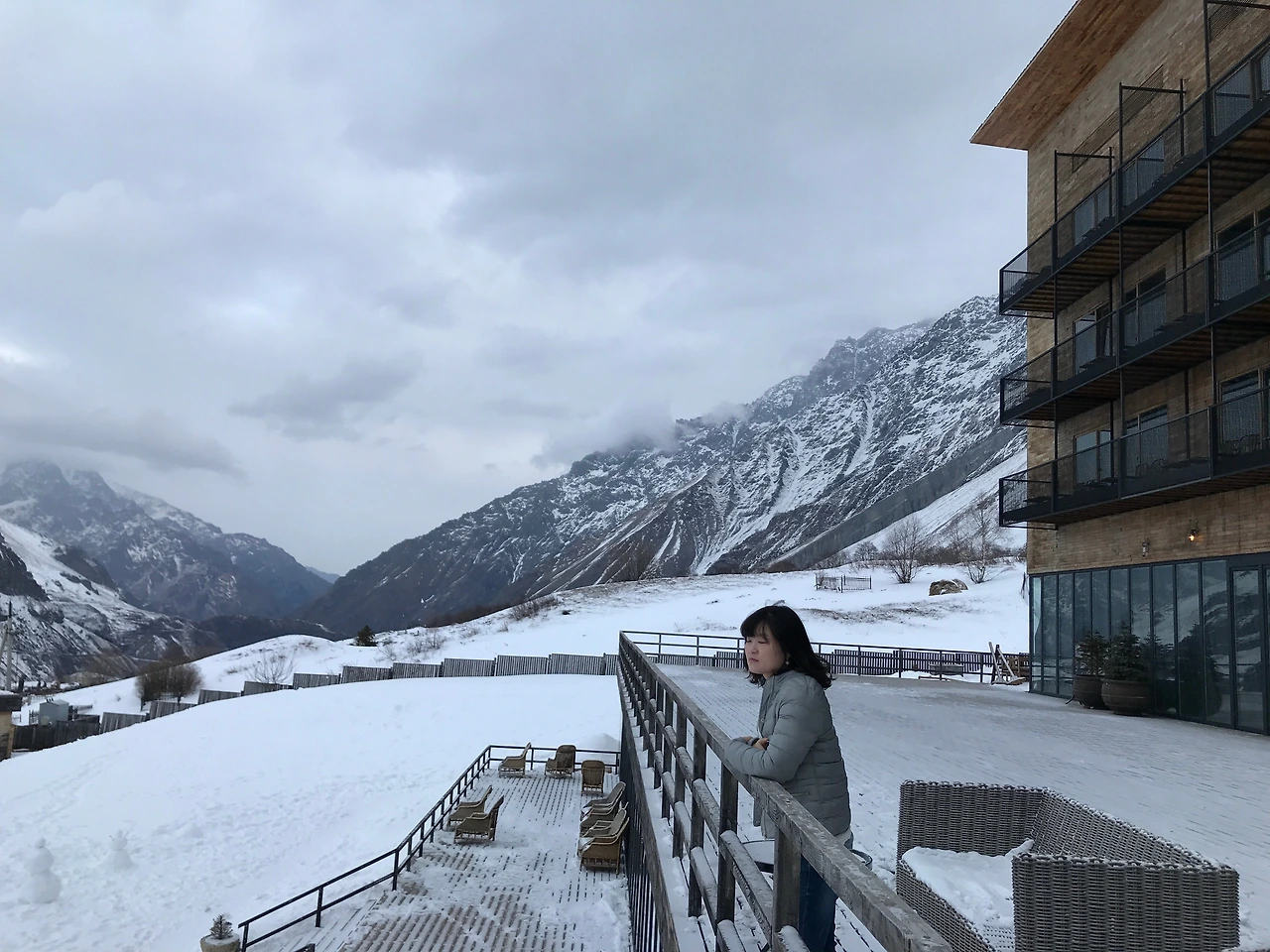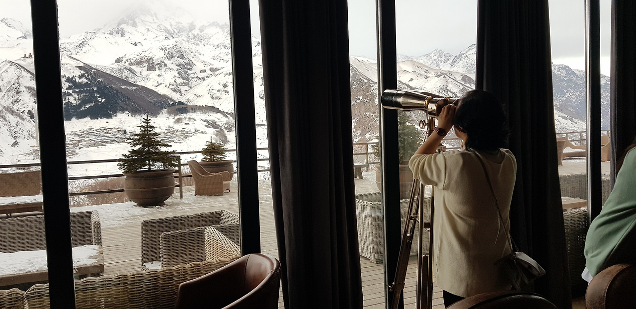 워낙 추운 시기라 이 테라스에서 여유있는 시간을 보내지 못해 아쉽다. 푸른 카즈베기를 보러 다시 오겠다 다짐했다.