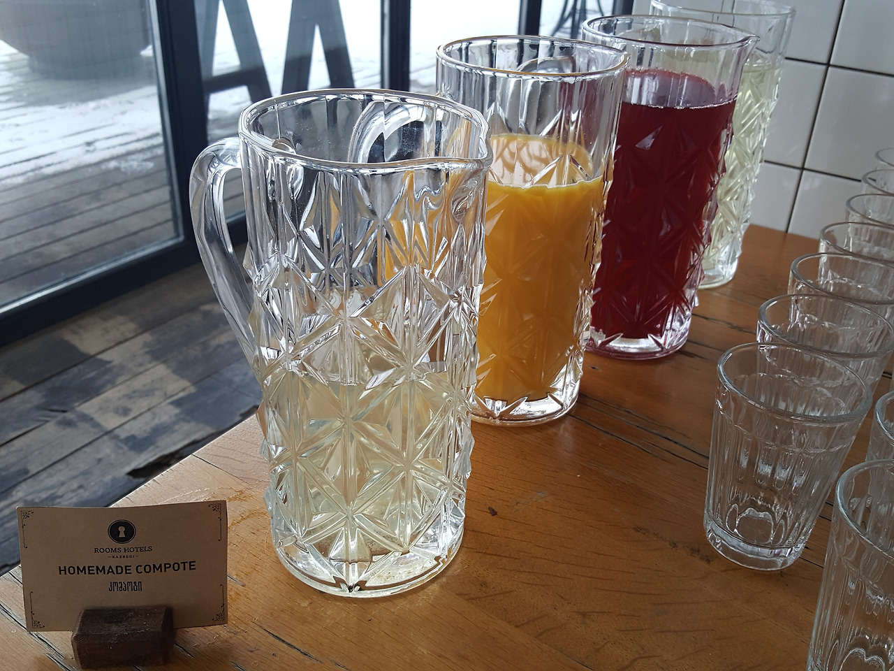 룸스의 큰 자랑은 호텔 로비 테라스에서 보이는 카즈베기 마운틴 뷰. 그런데이 뷰는 호텔 식사 정도만 이용해도 누릴 수 있다. 때문에 많은 여행자들이 주변 게스트하우스에 묶고 식당을 이용하고 호텔 뷰를 누리는 방법을 선택하기도 한다. 충분히 괜찮은 선택이다. (최근 숙박손님만 테라스 이용이 가능하다는 얘기가 있다. 확인이 필요한 부분이다)