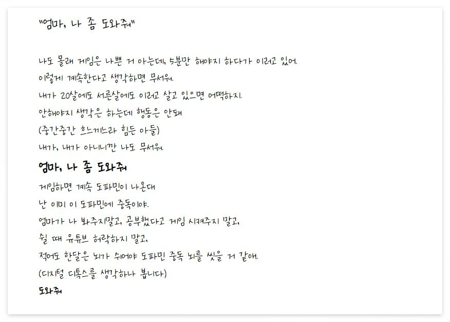 "엄마, 근데 패드로만 게임한 거 아니야. 엄마 노트북으로도 많이 했어. 그것도 미안해. "