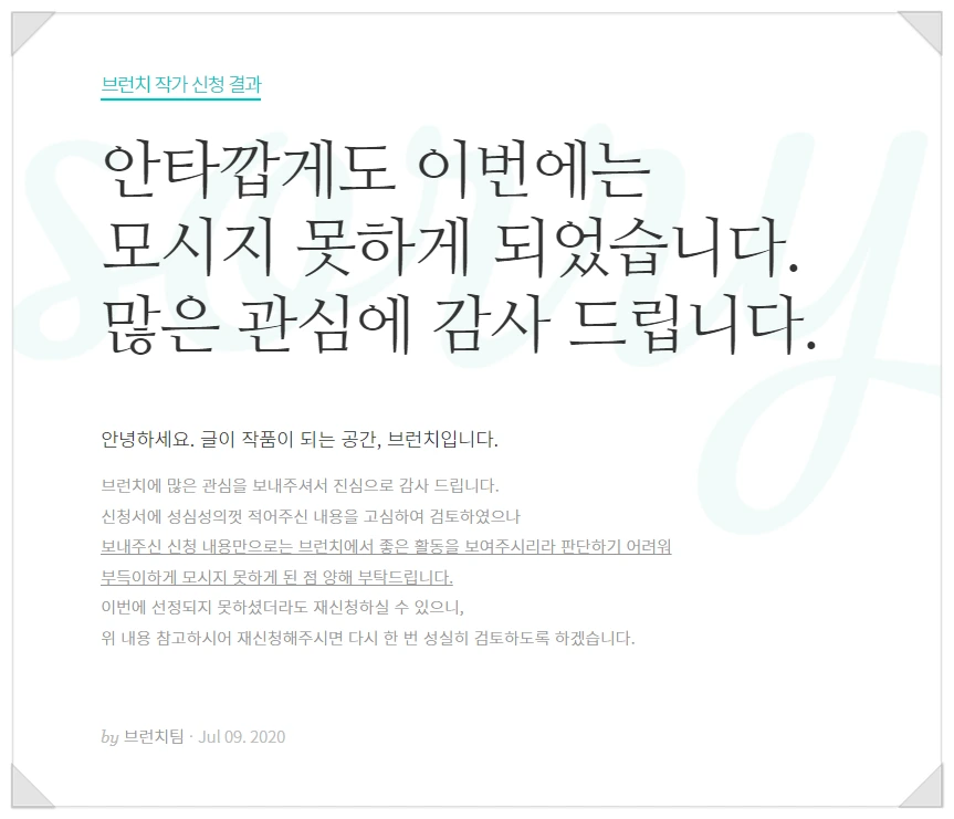 다시 브런치에 문을 두들겼고 이번에는 환영받았다.
