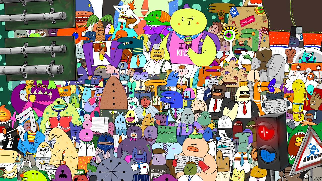 운 좋게도 이런 삶을 이어올 수 있었던 것은 20대 중반에 그리기 시작했던 몹스터(MOFFSTER)라는 캐릭터 작업 덕분이다. 간략히 말하자면, MONSTER(괴물)라는 단어 속 'ON'과 'OFF'를 대조시킨 것이다.