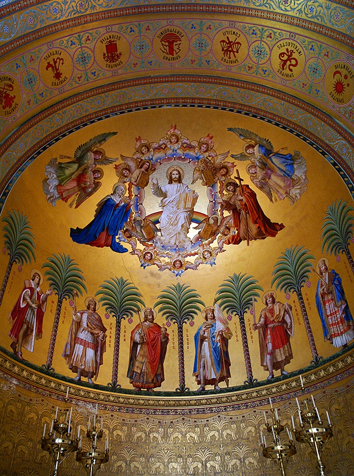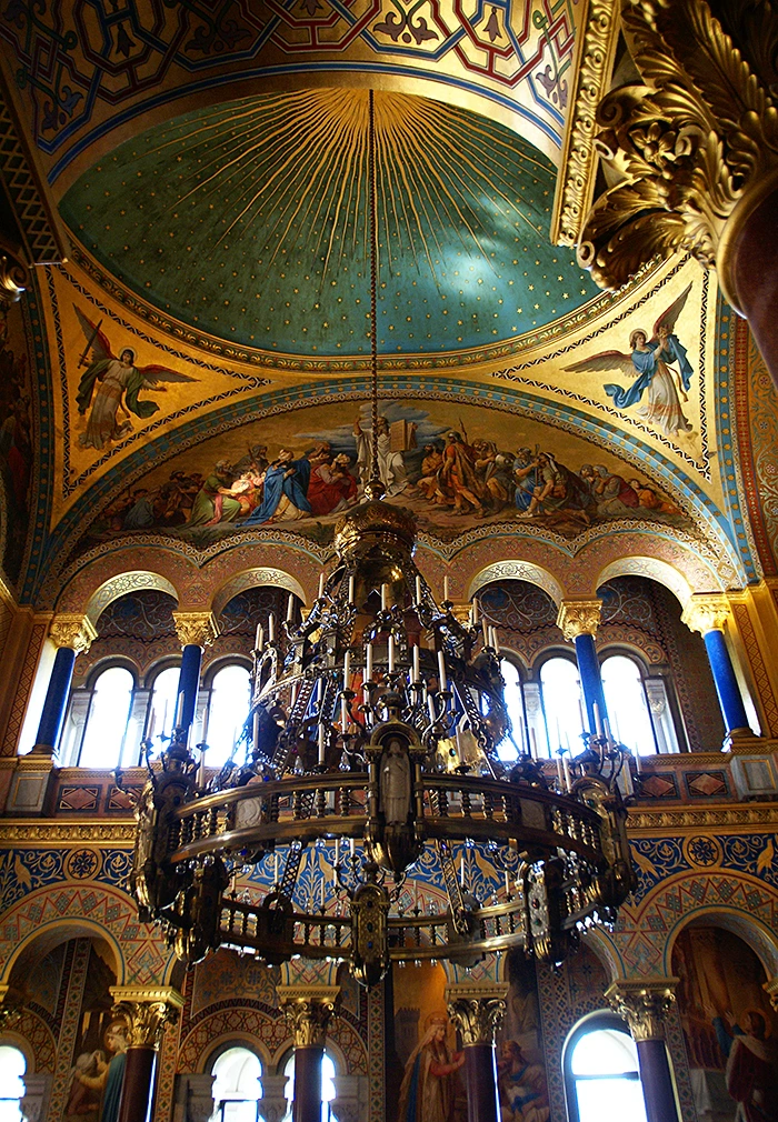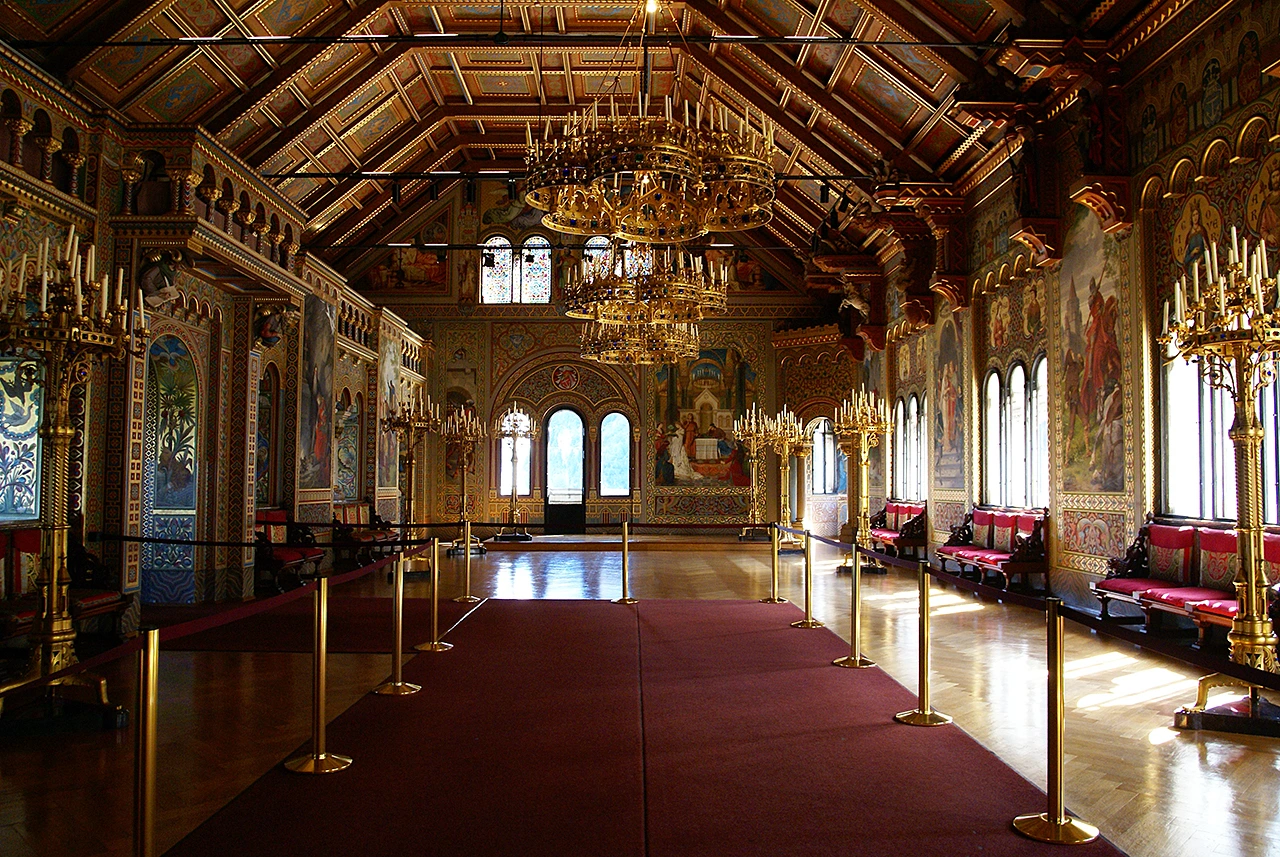 루트비히 왕의 몽상을 현실로 이루어준 사람은 당시의 무대 예술가 출신인 크리스티안 얀크 입니다. 그는 단순히 중세의 성을 만든 게 아니라 로마네스크, 비잔틴, 고딕 양식이 혼합된 생동감 넘치는 성을 건축합니다. 그리고 성의 모든 방에는 바그너의 오페라에 나오는 테마를 그대로 대입하여 조각과 프레스코화로 장식했습니다. 성 전체를 보면 중세 성배의 전설을 표현하고 있습니다.
