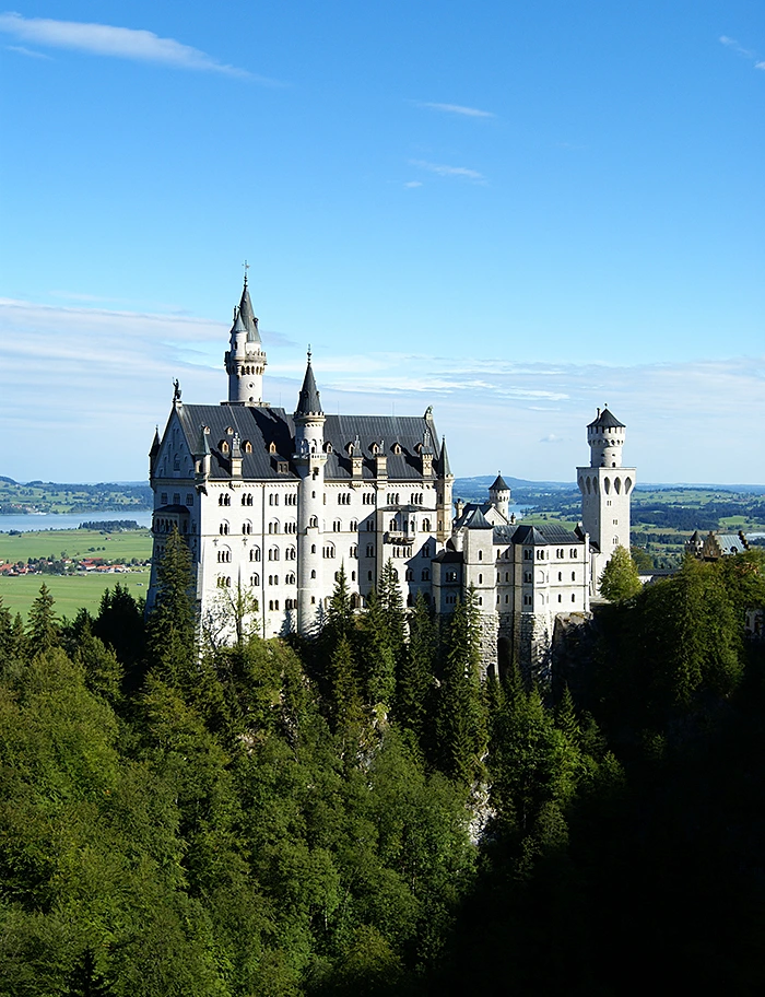 옛날이야기 책에 나오는 유럽의 성을 떠올릴 때 가장 비슷한 성이 “백조의 성”이라는 애칭을 같고 있는 “노이슈반스타인 성”이 아닐까 합니다. 디즈니의 랜드마크가 되어 더 유명해진 성입니다. 원래 유럽의 성들이 이렇게 아름답지 않았습니다. 방어용 목적으로 짖는 성을 외관에 치중할 수는 없었겠죠. 그러나 이 성은 바그너의 음악에 미친 바이에른의 왕, 루트비히 2세의 물불 못 가리는 집념으로 탄생했습니다. 노이슈반스타인 성은 알프스 끝자락의 아름다운 자연과 어우러져 먼 길을 달려온 여행자를 실망시키지 않습니다.