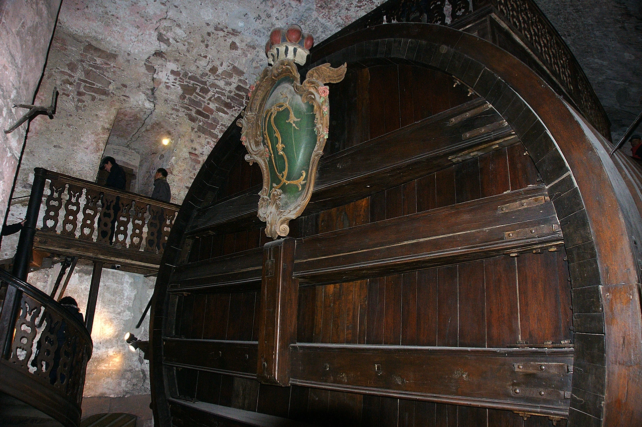 이 포도주 통은 1751년 제작된 것으로, 221,726ℓ의 포도주를 저장할 수 있는 크기입니다. 포도주 통이 있는 지하에 페르케오의 나무 상이 있는데 이 목상은 이탈리아에서 온 작은 키의 붉은 머리 익살꾼 페르케오입니다. 페르케오는 하루에 18ℓ의 포도주를 마신 대주가여서 그를 기리기 위해 목상을 제작하였다고 전해집니다.