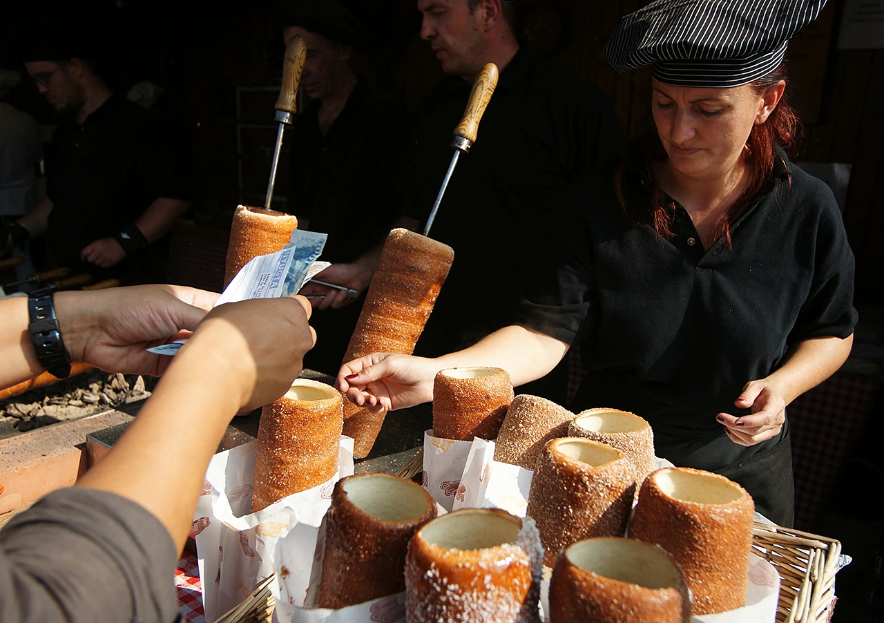 21. 뜨르들로 (Trdlo) 뜨레들로라고 불리기도 합니다. 속이 빈 막대 모양 빵으로 모양이 독특하여 쉽게 알아볼 수 있습니다. 프라하나 체스키크룸로프에 이 빵을 파는 곳이 특히 많습니다. 아이들이 들고 다니며 먹는 모습도 종종 보게 됩니다. 빵을 구우면 주변에 향기가 가득하여 고소한 냄새에 그냥 지나치기 힘들어집니다. 그냥 먹기도 하지만 초콜릿이나 잼을 발라 먹습니다. 헝가리에서도 볼 수 있는 빵입니다. 음료와 함께하면 간식으로 좋습니다.